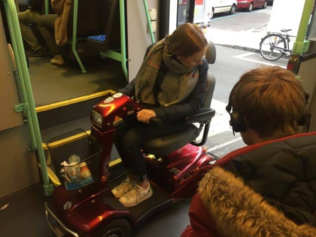 L’année dernière, en école de communication, j’ai fait la connaissance d’Alix, une jeune fille de 3ème année en Relations Publiques. Elle est touchée par un handicap qui l'empêche de se déplacer correctement, et se déplace donc en fauteuil. Nous n’étions pas dans la même section, mais nous avons passé beaucoup de temps ensemble l’année dernière. Un midi, il y a quelques jours, nous sommes allées déjeuner et nous avons parlé de mobilité. En effet, malgré l’habitude et une ville plutôt bien adaptée déjà aux personnes à mobilité réduite, Alix m’expliquait que se déplacer restait très compliqué.