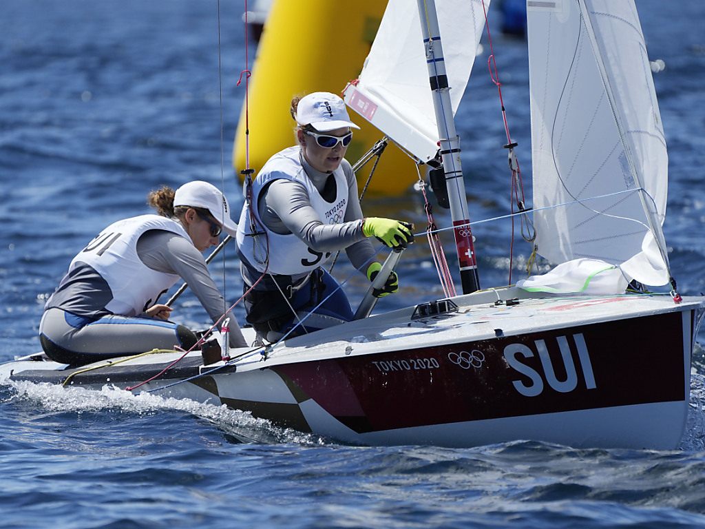 Maja Siegenthaler et Linda Fahrni ont connu une première régate difficile lors de la dernière journée mais disputeront la Medal Race. (© KEYSTONE/AP/Gregorio Borgia)