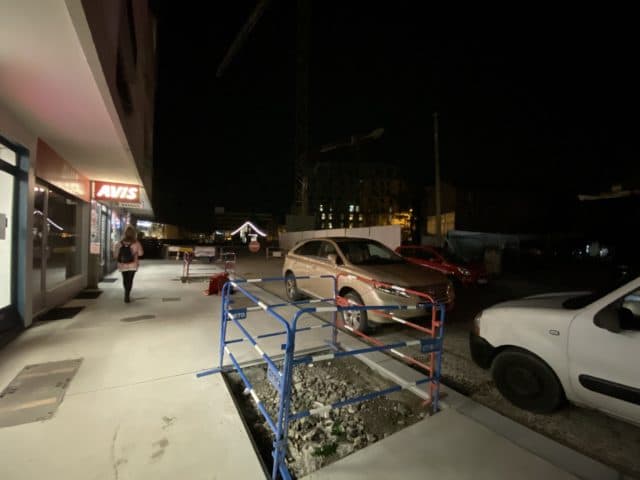 Annemasse, c’est bien le A du CEVA. La ville frontière sera bientôt à une vingtaine de minutes du centre de Genève. Bien que le nouveau réseau de transports régional nourrisse une grande ambition, le résultat est loin d’être probant. A moins d’un mois du lancement du RER Genevois, la gare française reste inachevée. Si le quai, l’espace de réservation et la signalétique sont prêts, les abords restent dans une quasi obscurité. Du centre ville, il faut parcourir des centaines de mètres sans aucun éclairage public au milieu de barrières et palissades pour aborder une gare fantomatique. Cyclistes et piétons s’y croisent dans le noir de manière anarchique. L’esplanade, (ancienne place de la Gare où stationnaient les taxis) est peu rassurante dès la tombée de la nuit. Découvrez notre reportage photo qui retrace le chemin du centre-ville vers la gare.