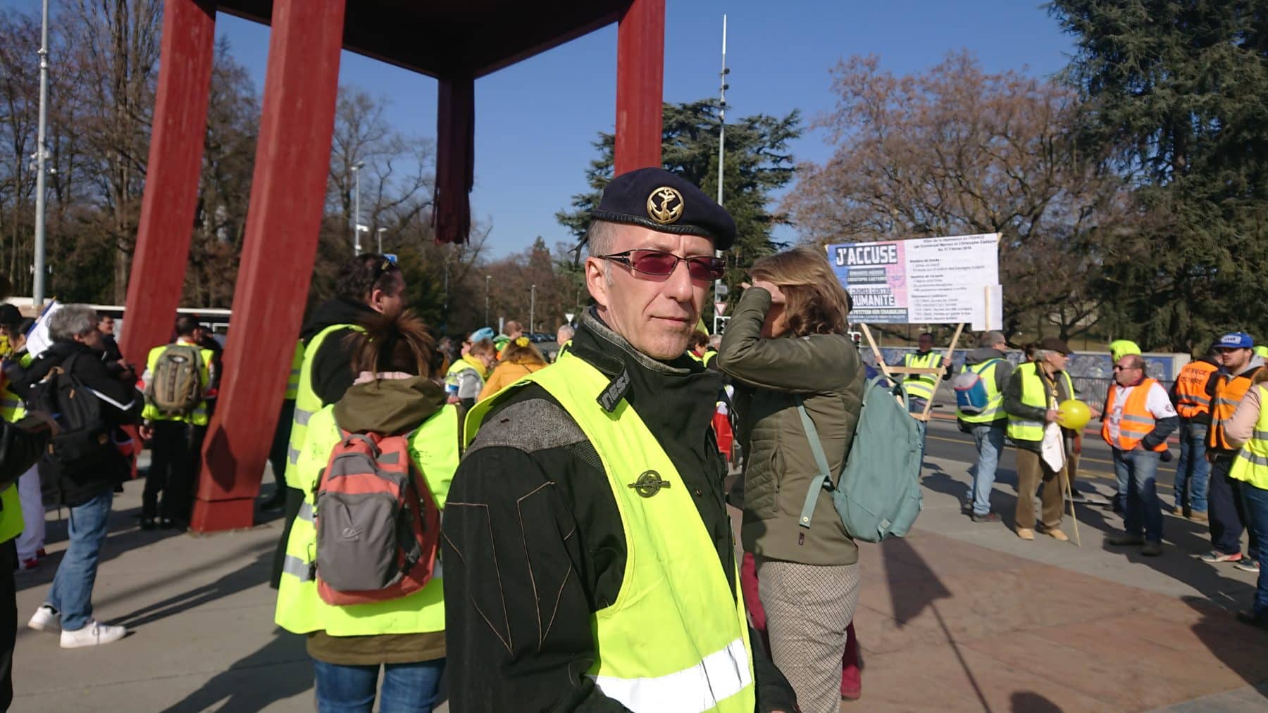 Mercredi matin, 1000 gilets jaunes se sont réunis sur la Place des Nations. Une manifestation organisée par un savoyard de 30 ans, Nicolas Mollier. A ses côtés, un ancien militaire, reconnaissable à son béret. L'homme présente une cicatrice à la gorge. Le 1er décembre, il a reçu une balle tirée par un LBD 40. LBD signifiant «lanceur de balles de défense» et «40» indiquant le calibre. Ecoutez son témoignage: