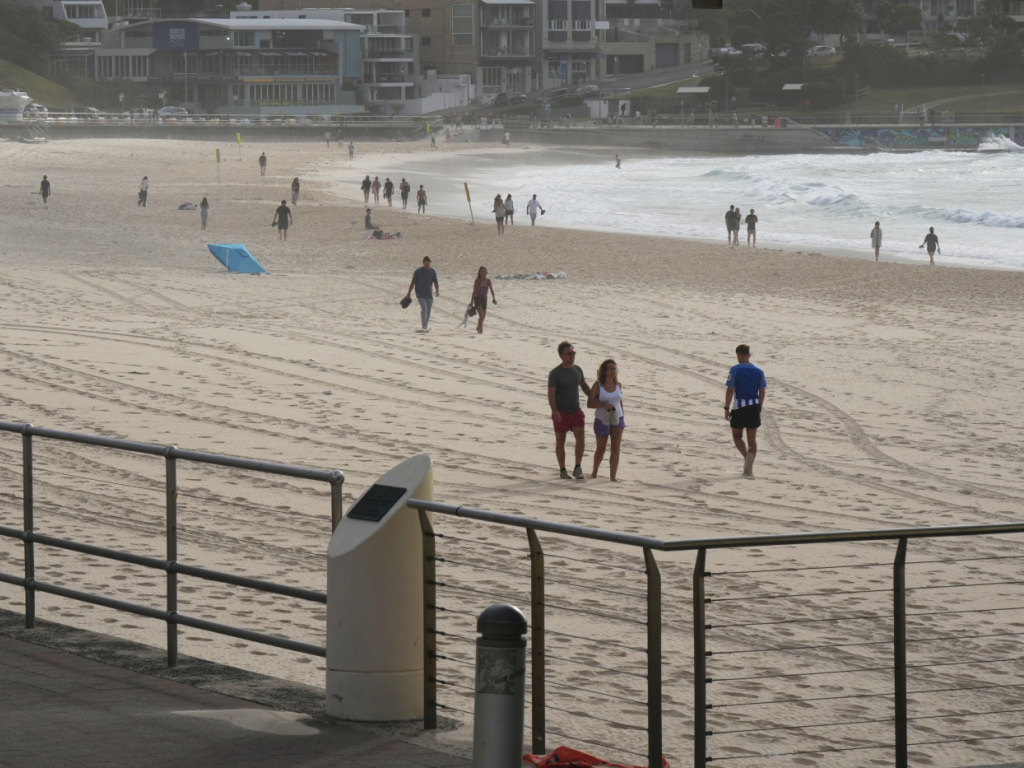 Des personnes se promènent le long de la plage de Bondi à Sydney, un jour après une fusillade de masse, lundi. (© KEYSTONE/AP/Mark Baker)