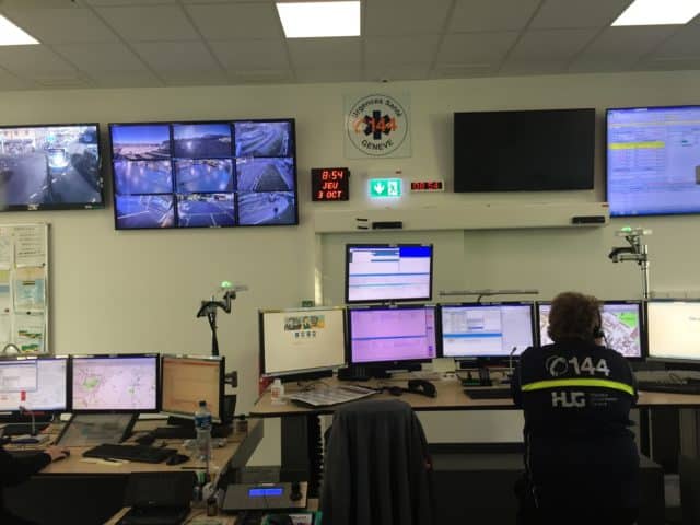 L’endroit ressemble un peu à une tour de contrôle, remplie d’écrans en tout genre. De téléphones également, puisque c’est dans ce bâtiment rénové que l’on traite les 200 appels d’urgences journaliers à Genève.