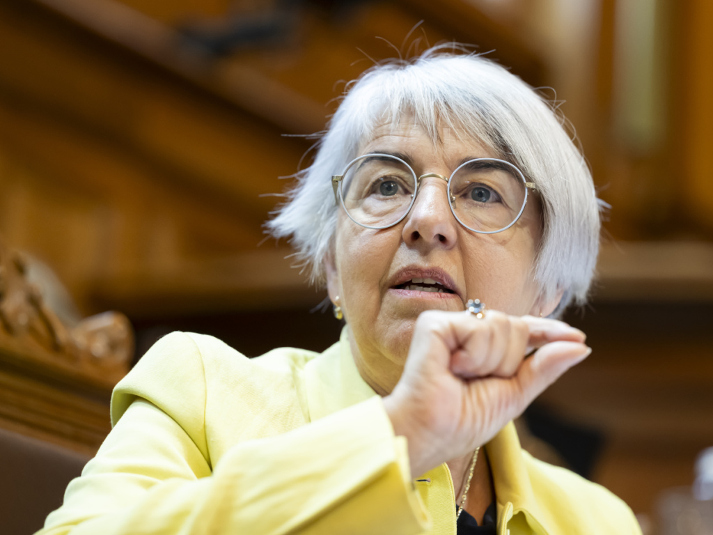 La conseillère fédérale Elisabeth Baume-Schneider demande de courir le "marathon" des alertes météorologiques urgentes au rythme d'un "sprint" pour garantir que tous les pays soient dotés d'une politique adaptée (archives). (© KEYSTONE/ANTHONY ANEX)