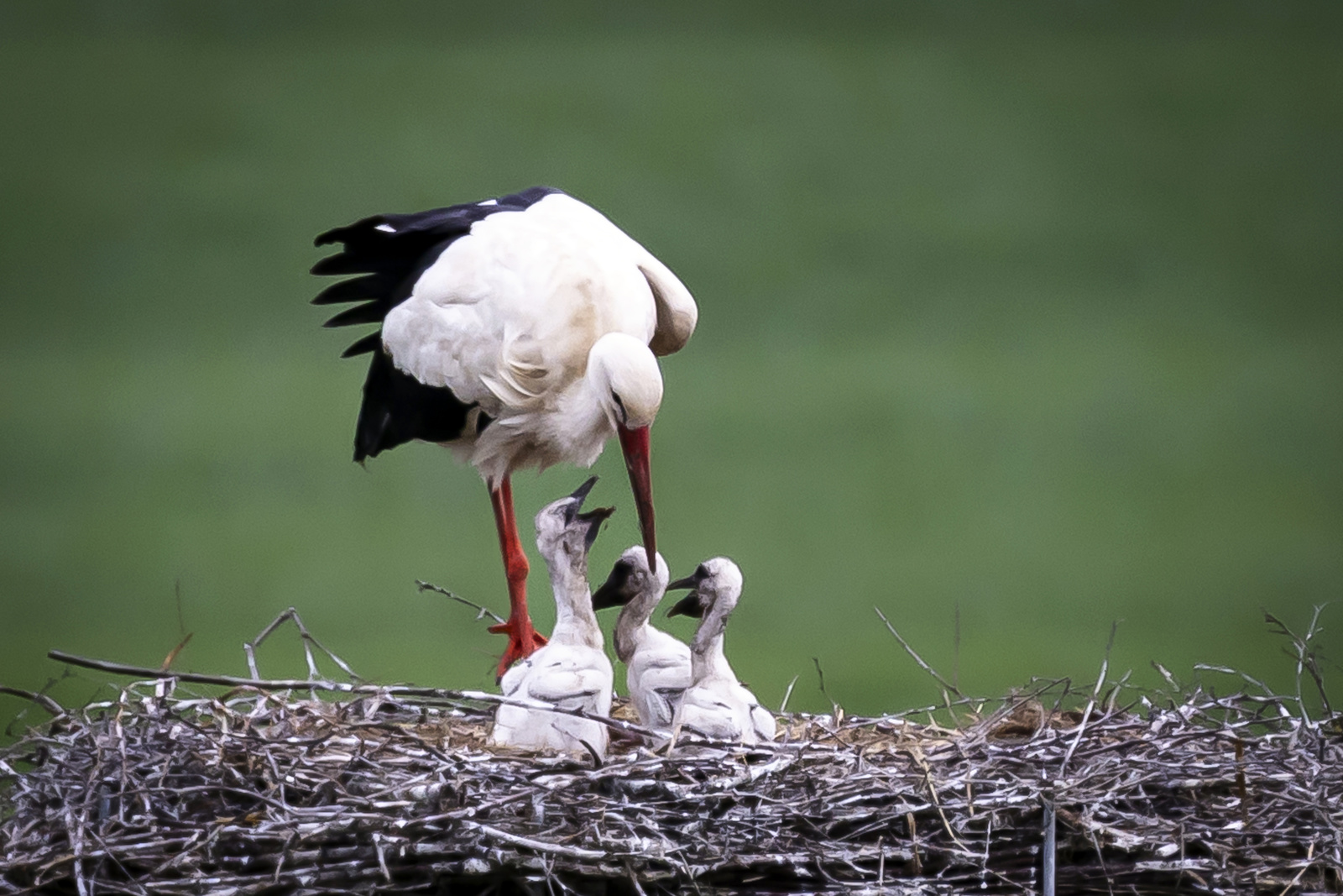 Une cigogne et ses petits photographiés dans la région de Zurich. Bientôt pareille scène dans la région genevoise ? (KEYSTONE/Michael Buholzer)