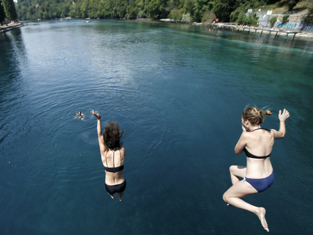 Les baigneurs et les baigneuses peuvent à nouveau profiter de la fraîcheur des eaux du Rhône. (© KEYSTONE/SALVATORE DI NOLFI)