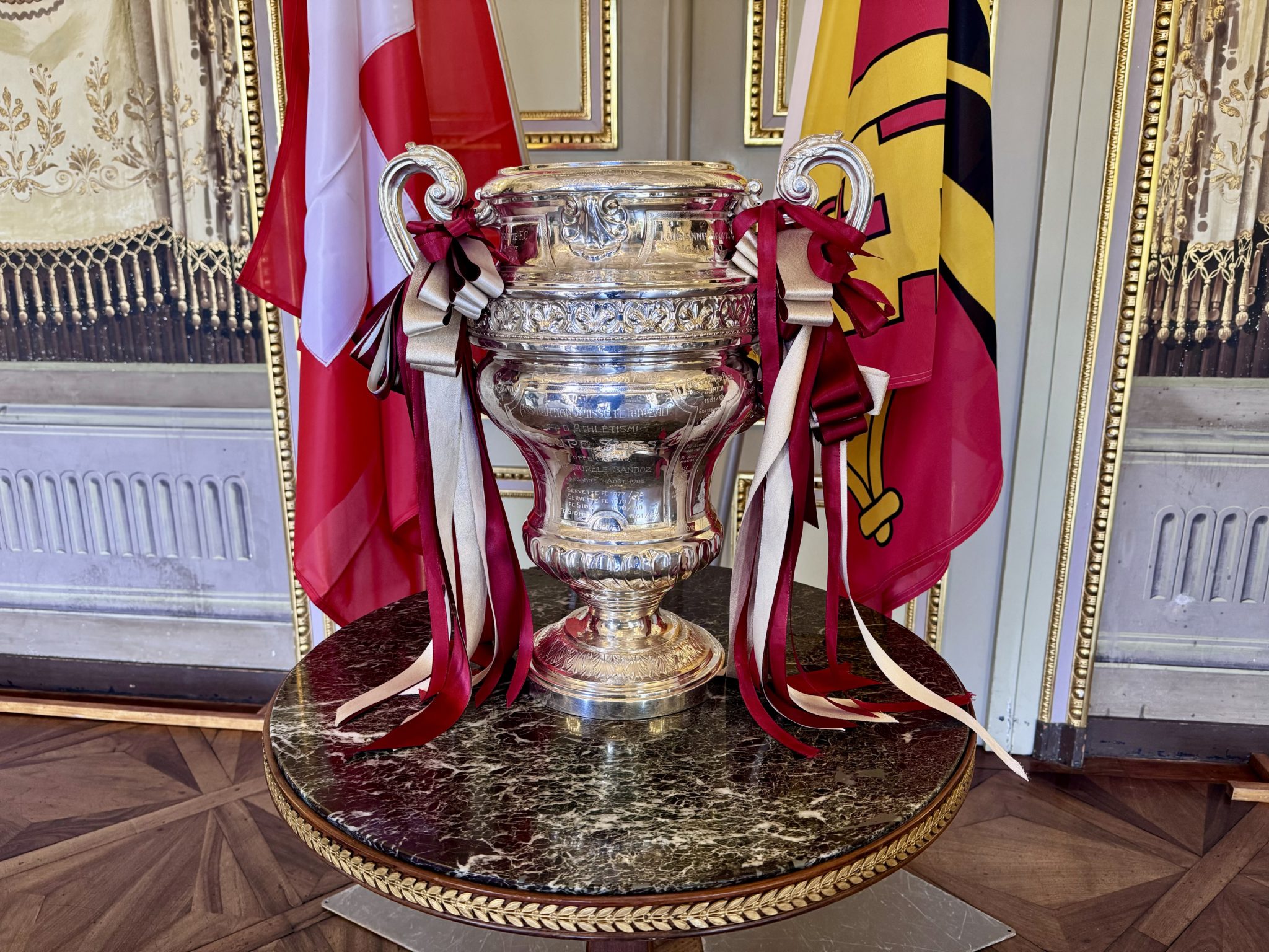 Trois jours après le succès historique du Servette FC en finale de la Coupe de Suisse, au bout du suspens contre Lugano, le trophée était exceptionnellement exposé ce mercredi après-midi dans les salons du Palais Eynard.