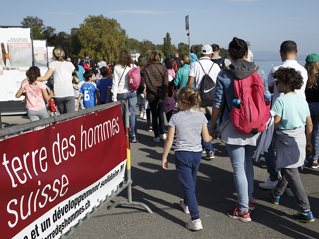 Pour les 100 ans de la Déclaration de Genève, Terre des hommes Suisse a proposé à des enfants du monde entier de revisiter ce texte fondateur selon leurs réalités. Ces textes accompagnés de photographies sont exposés au quai Wilson (illustration). (© KEYSTONE/SALVATORE DI NOLFI)