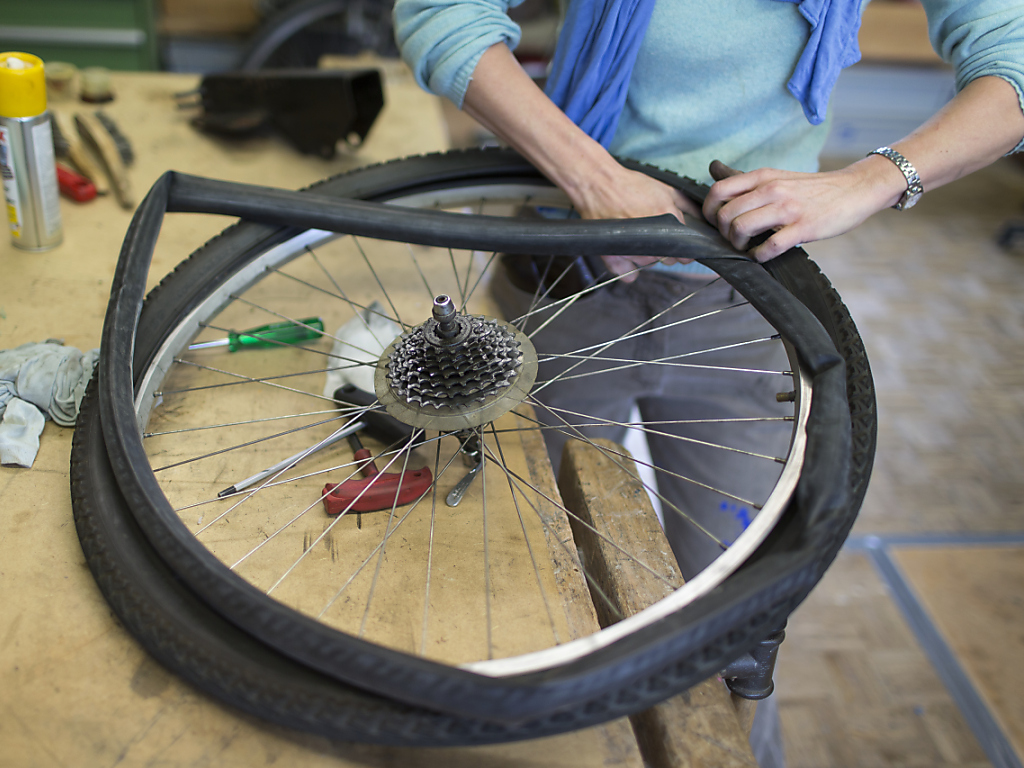Dans le cadre de ses "Samedis du vélo", l'association Pro Vélo Genève propose dès le 13 avril 18 balades culturelles guidées à vélo, ainsi que des cours de conduite et de mécanique (illustration). (© KEYSTONE/GAETAN BALLY)