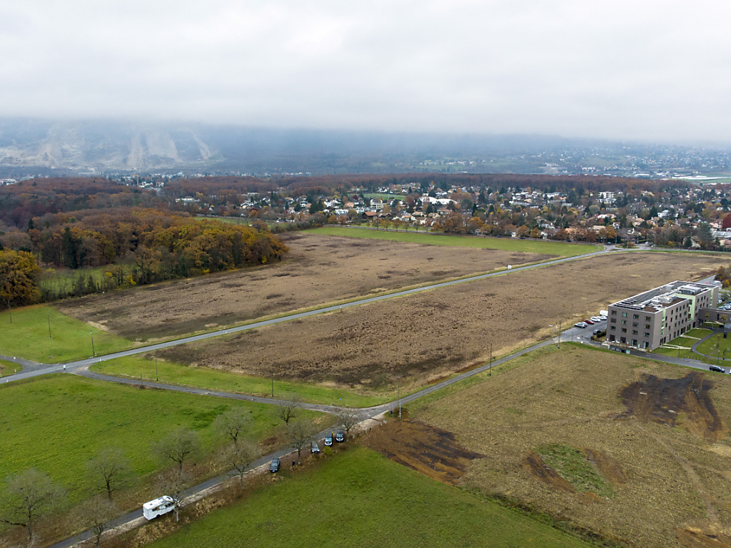 Le projet des Grands Esserts qui doit se déployer sur des terrains situés au pied du Salève sur la commune de Veyrier, ici à l'image, fait partie des objectifs prioritaires d'urbanisation du canton (archives), (© KEYSTONE/SALVATORE DI NOLFI)