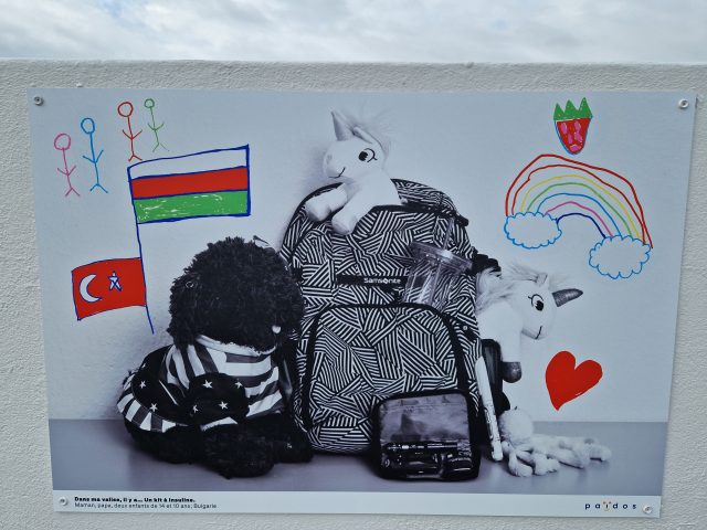 Par exemple, sur une des photos on voit un sac à dos, avec des peluches et des médicaments. Il s’agit d’une famille qui vient de Bulgarie avec deux enfants de 14 et 10 ans.