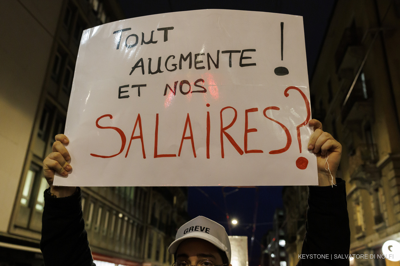 Les employés de la Ville de Genève étaient en grève jeudi pour dénoncer les mesures d'économies prévues en 2026. Ils étaient un millier à manifester en milieu de journée. (© KEYSTONE/PIERRE ALBOUY)