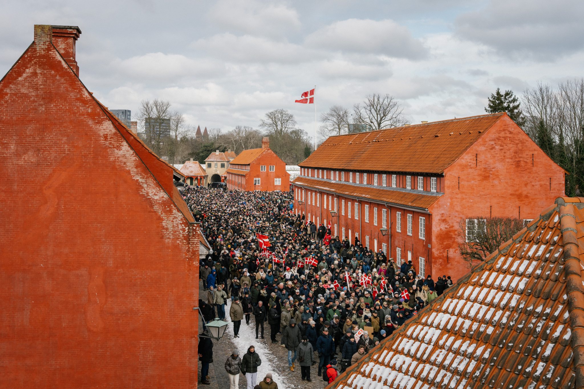 Réunis au Kastellet, la citadelle de Copenhague, les manifestants ont assisté à une brève cérémonie devant le monument dédié aux soldats tombés au combat avant que le cortège ne se mette en marche.