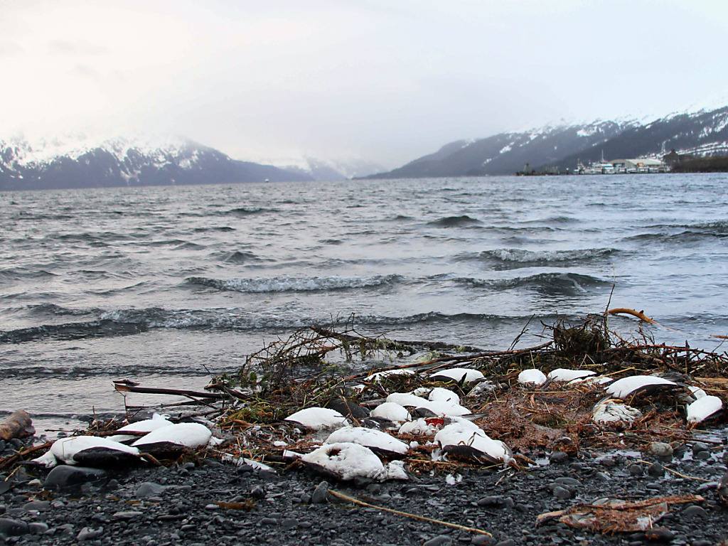 Mais cette vague de chaleur s'étant étirée sur deux années et ayant touché une vaste zone du nord-est de l'océan Pacifique, de la Californie à l'Alaska, les a lourdement affectés. Durant cet épisode, 62'000 oiseaux émaciés, morts ou mourants, ont été retrouvés sur des milliers de kilomètres de côtes.
