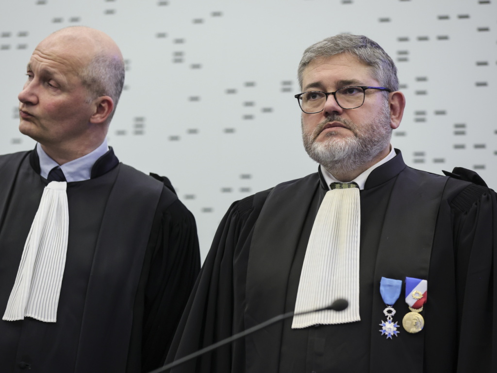 L'avocat général Stephane Kellenberger (à dr.) a demandé la peine maximale de 20 ans de prison assortie de mesures de sûreté à l'encontre du chirurgien pédocriminel Joèel Le Souarnec. EPA/TERESA SUAREZ (© KEYSTONE/EPA/TERESA SUAREZ)