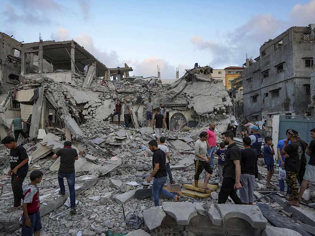Selon le service d'action de l'ONU contre les mines, les décombres de Gaza sont probablement fortement contaminés par des UXO (munitions non explosées), mais leur nettoyage sera encore compliqué par d'autres dangers. Il y aurait notamment plus de 800'000 tonnes d'amiante dispersées. (© KEYSTONE/AP/Abdel Kareem Hana)