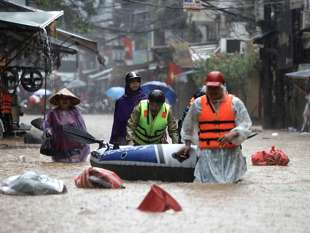 Les eaux de crue au Viêt Nam se retirent, s'écoulant par le fleuve Rouge - le principal cours d'eau de la région - jusqu'à la mer. Les autorités de plusieurs districts du delta du fleuve Rouge ont ordonné à plus de 50'000 personnes d'évacuer leur domicile par précaution, le temps que les eaux de ruissellement s'écoulent.