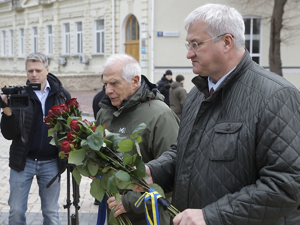 "L'objectif clair de cette visite est d'exprimer le soutien de l'Union européenne à l'Ukraine - ce soutien reste indéfectible", a déclaré à la presse M. Borrell. (© KEYSTONE/EPA/SERGEY DOLZHENKO)