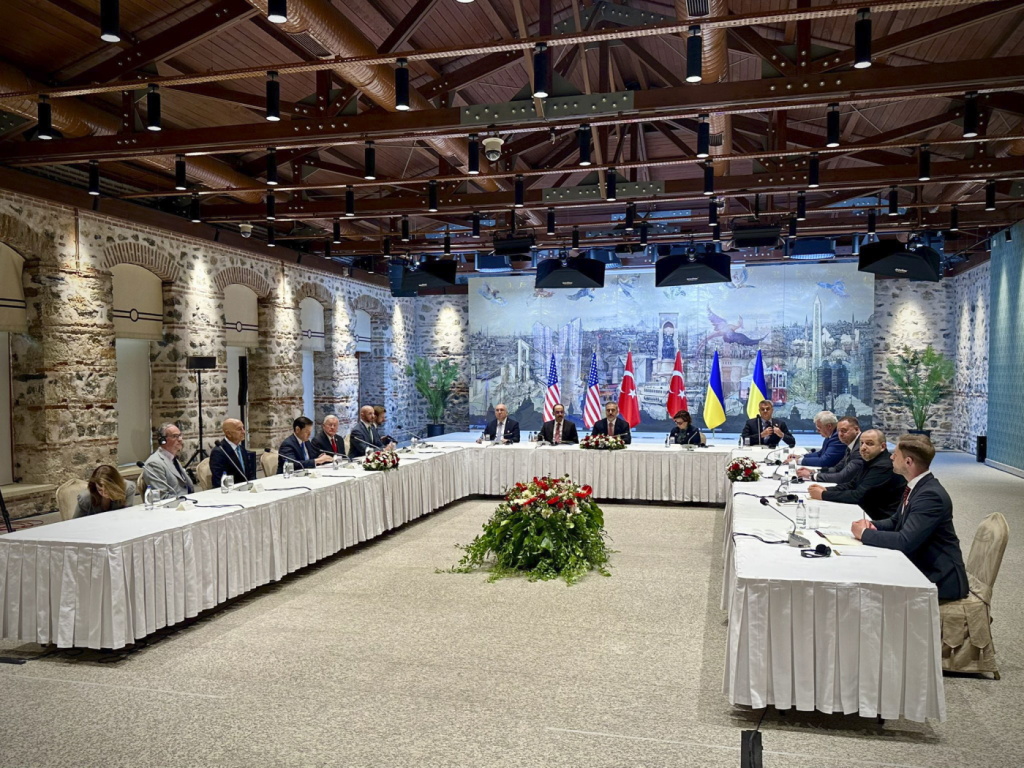 Les deux délégations, menées par le ministre de la Défense côté ukrainien et par un conseiller présidentiel de second plan côté russe, ont échangé pendant environ 1H40, entourées des médiateurs turcs, au palais de Dolmabahçe.