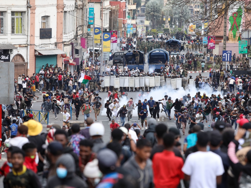 Pendant que des tirs de gaz lacrymogène résonnent à Antananarivo, des rassemblements de jeunes dans plusieurs villes du pays réclament mercredi le départ du président Andry Rajoelina, après déjà une semaine de manifestations et un appel désormais à la grève générale.