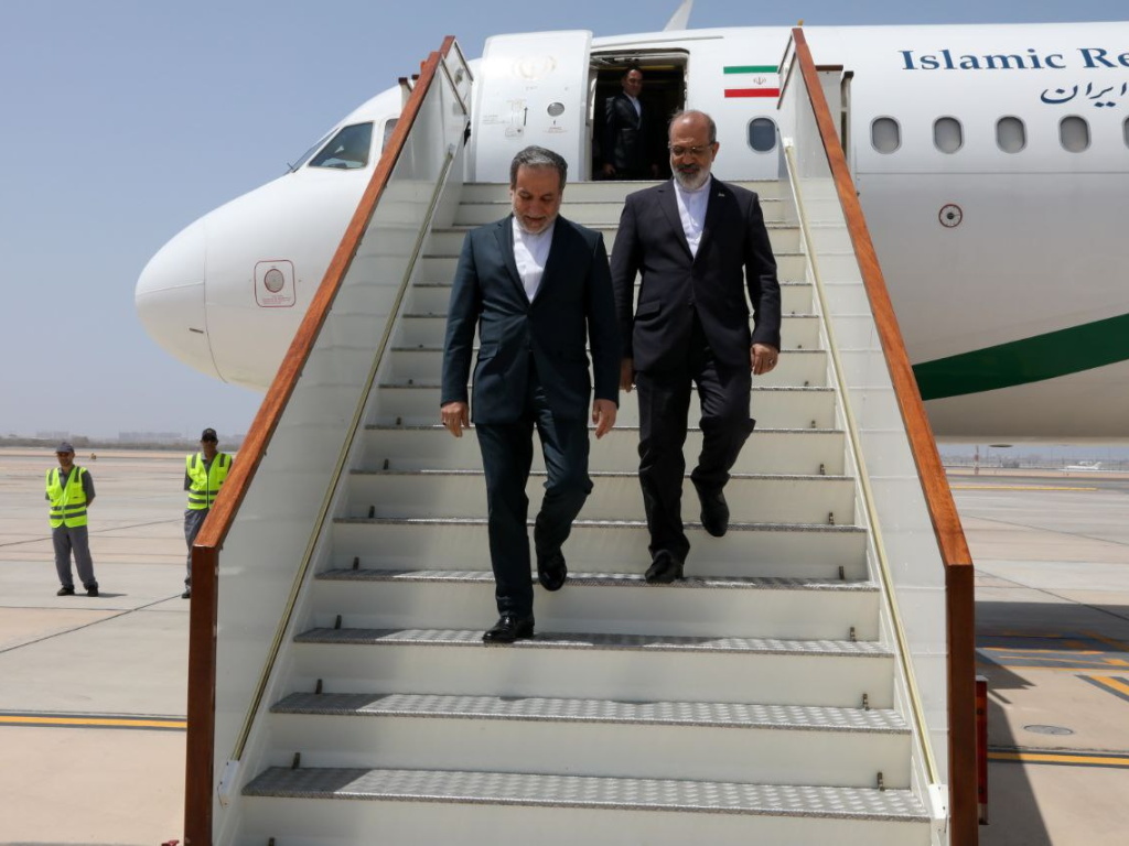 Le ministre iranien des Affaires étrangères Abbas Araghchi (à gauche) dimanche à l'aéroport de Mascate, Oman: le 4e cycle de négociations nucléaires avec les États-Unis est désormais achevé (archives). (© KEYSTONE/EPA/IRANIAN FOREIGN MINISTRY)