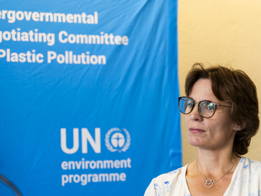"Le monde, du nord au sud, le secteur privé et la société civile veulent un traité mondial sur le plastique", a-t-elle dit. Elle vante les vertus d'un accord pour la santé et l'économie.