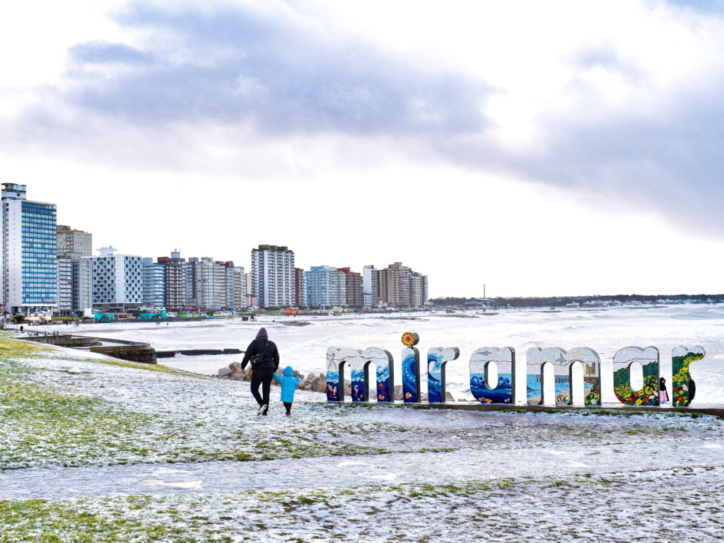 Le sud de l'Amérique latine est victime d'une vague de froid, comme ici sur la plage de Miramar, recouverte d'une fine pellicule de neige. (© KEYSTONE/EPA/MUNICIPALITY OF GENERAL ALVARADO / HANDOUT)