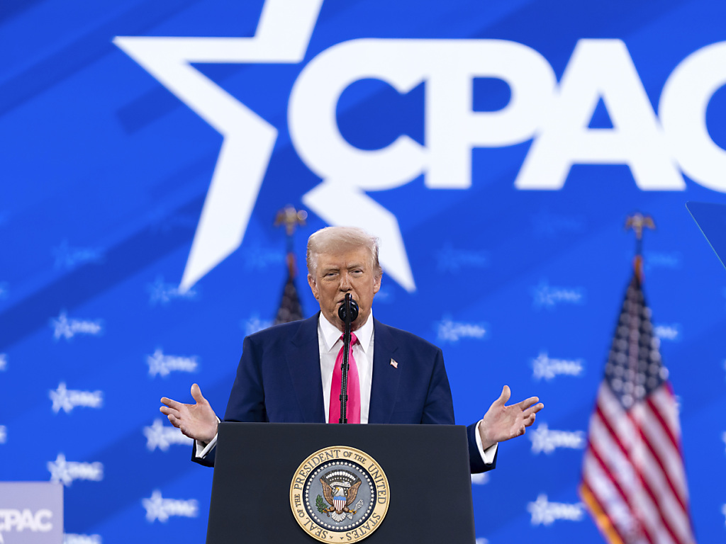 Dans son discours à la convention CPAC, Donald Trump s'en est pris au "funeste groupe de marxistes de gauche extrême va-t-en-guerre" qui selon lui gouvernait le pays avant son retour au pouvoir. (© KEYSTONE/AP/Jose Luis Magana)