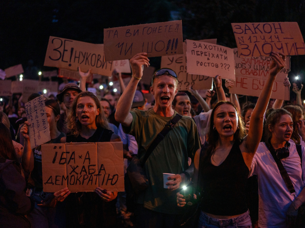 Plusieurs centaines de manifestants sont descendus dans les rues de la capitale ukrainienne, selon un reporter de l'AFP sur place, pour exprimer leur colère. "Le projet de loi a été adopté à la hâte", a critiqué parmi eux Anastasia, une conceptrice de jeux vidéo de 26 ans qui dénonce une "action ciblée".