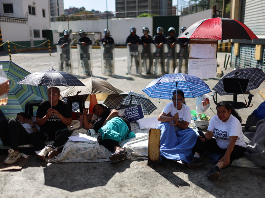 Des familles de prisonniers campent depuis plusieurs semaines devant la prison de Zona 7 à Caracas, où des prisonniers politiques sont détenus (archives). (© KEYSTONE/EPA/Miguel Gutierrez)