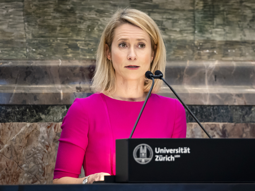 A Zurich, la haute représentante de l'Union européenne pour les affaires étrangères, Kaja Kallas, appelle les pays européens à s'engager en faveur d'un ordre international fondé sur des règles face aux crises et aux guerres. (© KEYSTONE/MICHAEL BUHOLZER)