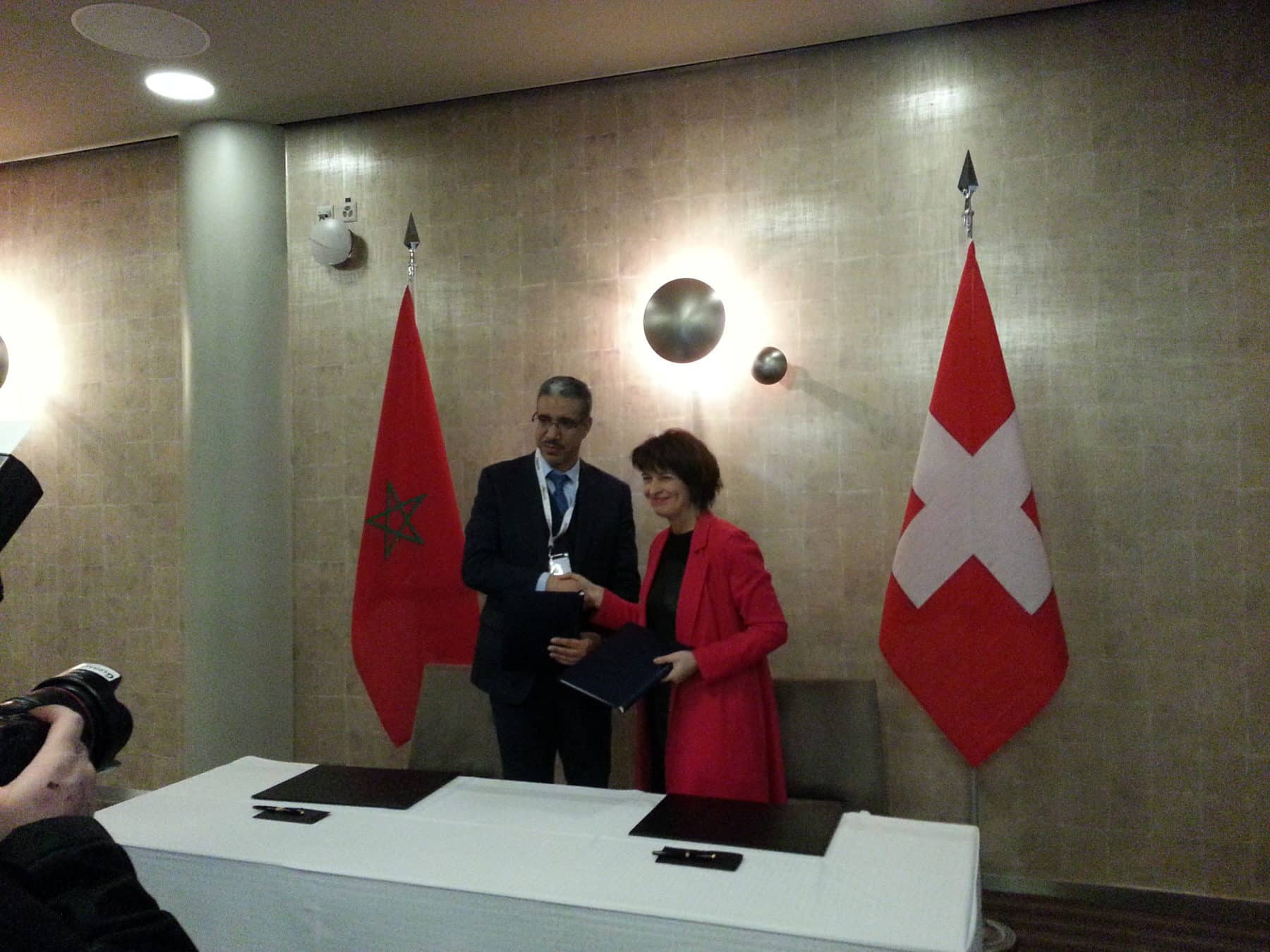 Beaucoup de politiques étaient présents, dont la conseillère fédérale chargée de l'environnement, du transport  et de l’énergie, Doris Leuthard. Elle est venue signer un pacte d’entente, autrement dit un accord d’échanges futurs avec le ministre de l’énergie du Maroc, Aziz Rebbah. Doris Leuthard, conseillère fédérale :