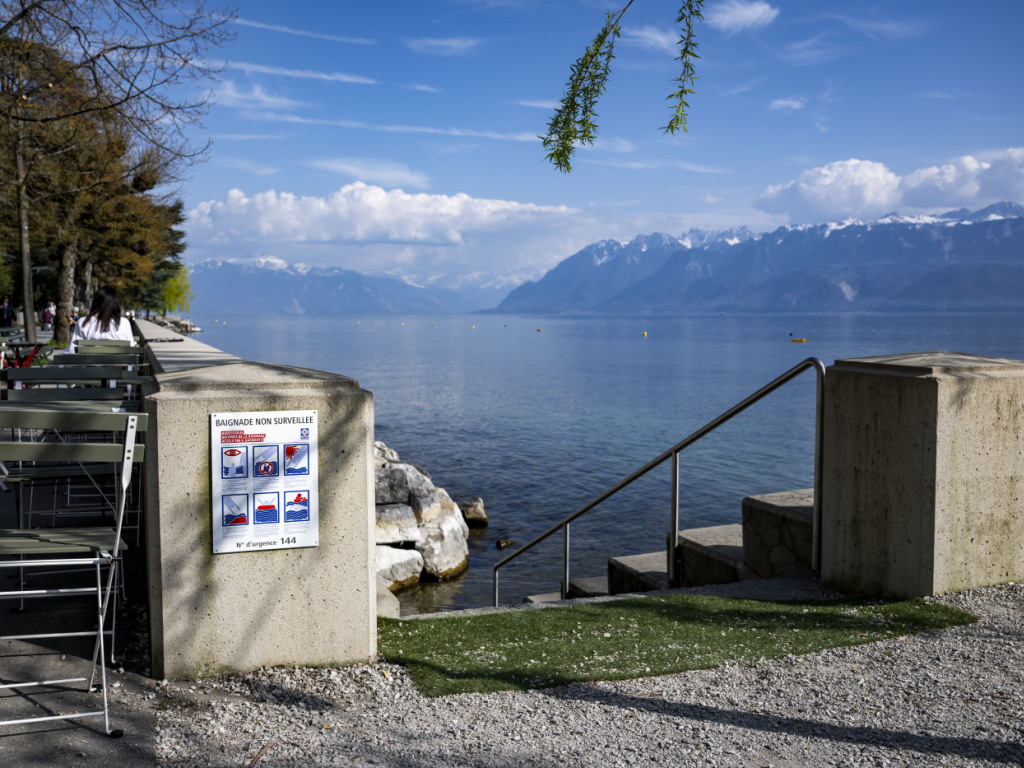 Lausanne continue de développer les accès à l'eau pour les nageurs, comme ici en avril dernier au Quai d'Ouchy (archives). (© KEYSTONE/JEAN-CHRISTOPHE BOTT)
