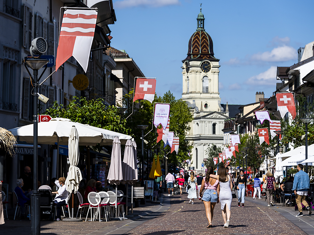 La population vaudoise, comme ici dans la Grand-Rue de Morges, a augmenté de 1,1% en 2024 (archives). (© KEYSTONE/JEAN-CHRISTOPHE BOTT)