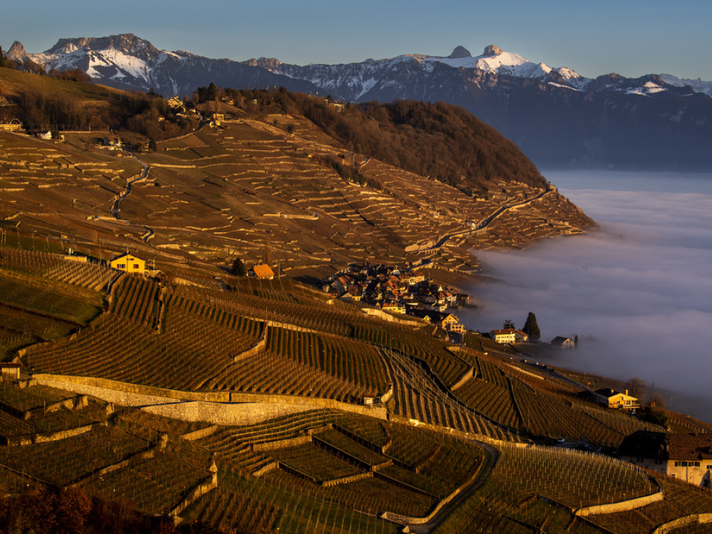 En 256 pages et 427 illustrations, l'ouvrage "Lavaux - Patrimoine bâti" permet de découvrir plusieurs châteaux médiévaux, maisons vigneronnes, domaines viticoles et de villages, églises ou monuments pittoresques, de la région inscrite au Patrimoine mondial de l'UNESCO depuis 2007 (archives). (© Keystone/JEAN-CHRISTOPHE BOTT)