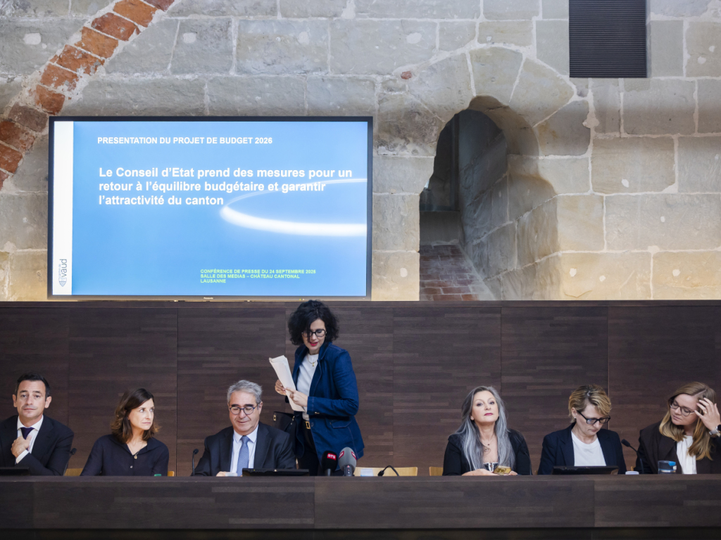 Le Conseil d'Etat vaudois a présenté mercredi un projet de budget 2026 déficitaire de 331 millions de francs. Il intègre notamment des mesures d'économies de 305 millions.