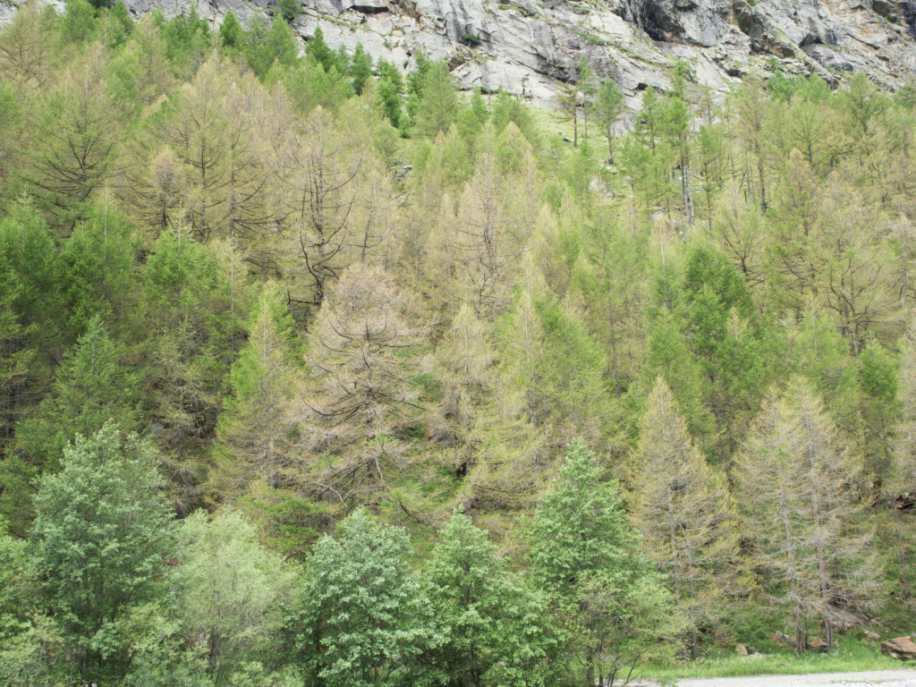 Dans la vallée de Saas et dans la vallée de Conches (VS), les forestiers ont observé depuis début juin un jaunissement et une perte des aiguilles des mélèzes. Certains arbres ont été complètement défoliés, a indiqué mercredi l'Institut fédéral de recherches sur la forêt, la neige et le paysage (WSL) dans un communiqué.