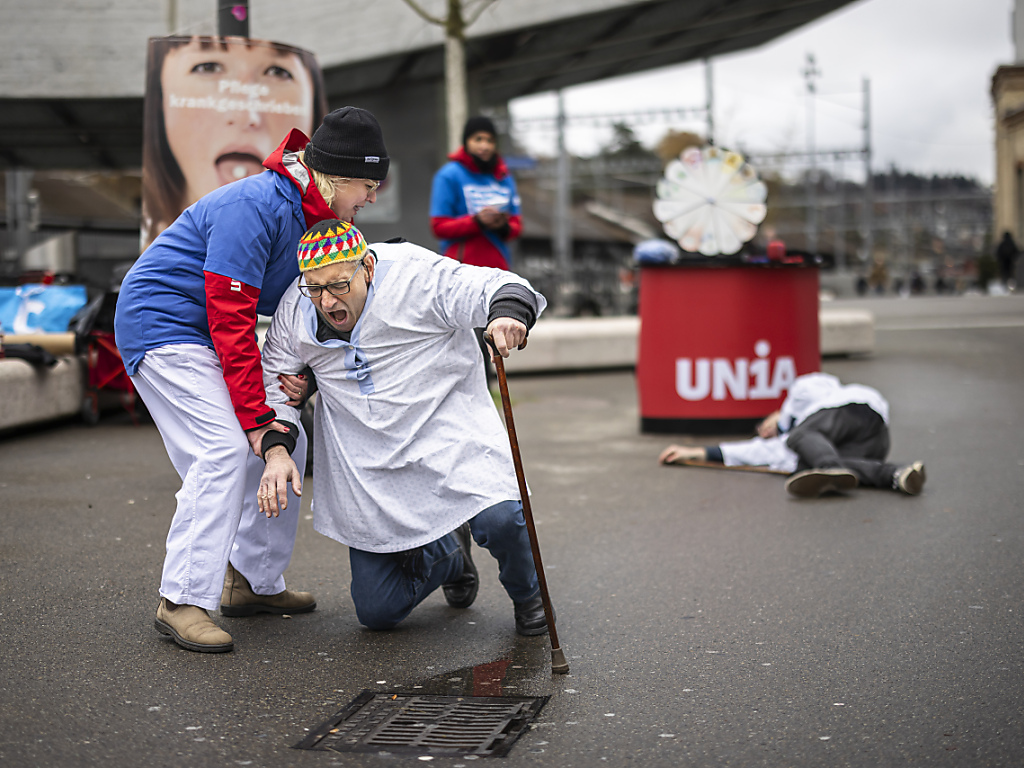 Les mauvaises conditions de travail, et en particulier le financement insuffisant, "continuent de rendre les soins malades", dénonce mercredi Unia dans un communiqué. Par des flash mob, des discours et des stands d'information, les soignants ont présenté leurs "remèdes" dans neuf villes suisses (Bâle, Berne, Coire, Delémont, Neuchâtel, Olten, Saint-Gall, Winterthour et Zurich).