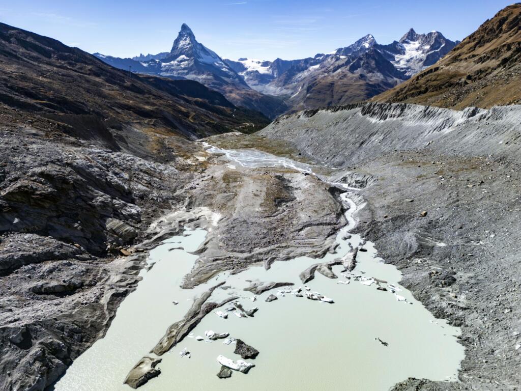 Une vue du lac glaciaire, formé par la fonte du glacier de Findelen (VS) devant le Cervin (Matterhorn) le vendredi 19 septembre 2025 a Zermatt (archives). (© Keystone/JEAN-CHRISTOPHE BOTT)