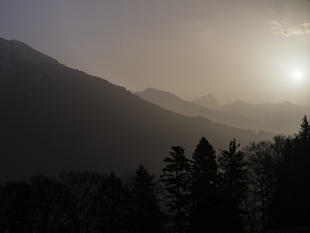 Le vent venu du sud a charrié des quantités très élevées de poussières de sable du Sahara. SRF Meteo a calculé que 180'000 tonnes de sable du désert - plus du double que lors de précédents épisodes du même type - avaient survolé la Suisse, faisant apparaître en certains endroits une brume orangée ou jaunâtre.