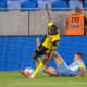Jacob De la Rose conclut une action d'école pour le 3-0 fribourgeois (© KEYSTONE/PETER KLAUNZER)