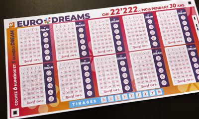 Personne n'a trouvé la combinaison gagnante à l'Eurodreams lundi soir. Pour gagner une rente mensuelle de 22'222 francs durant 30 ans, il fallait jouer les six numéros 4, 19, 25, 26, 38 et 40, ainsi que le numéro "dream" 3, a indiqué la Loterie romande.