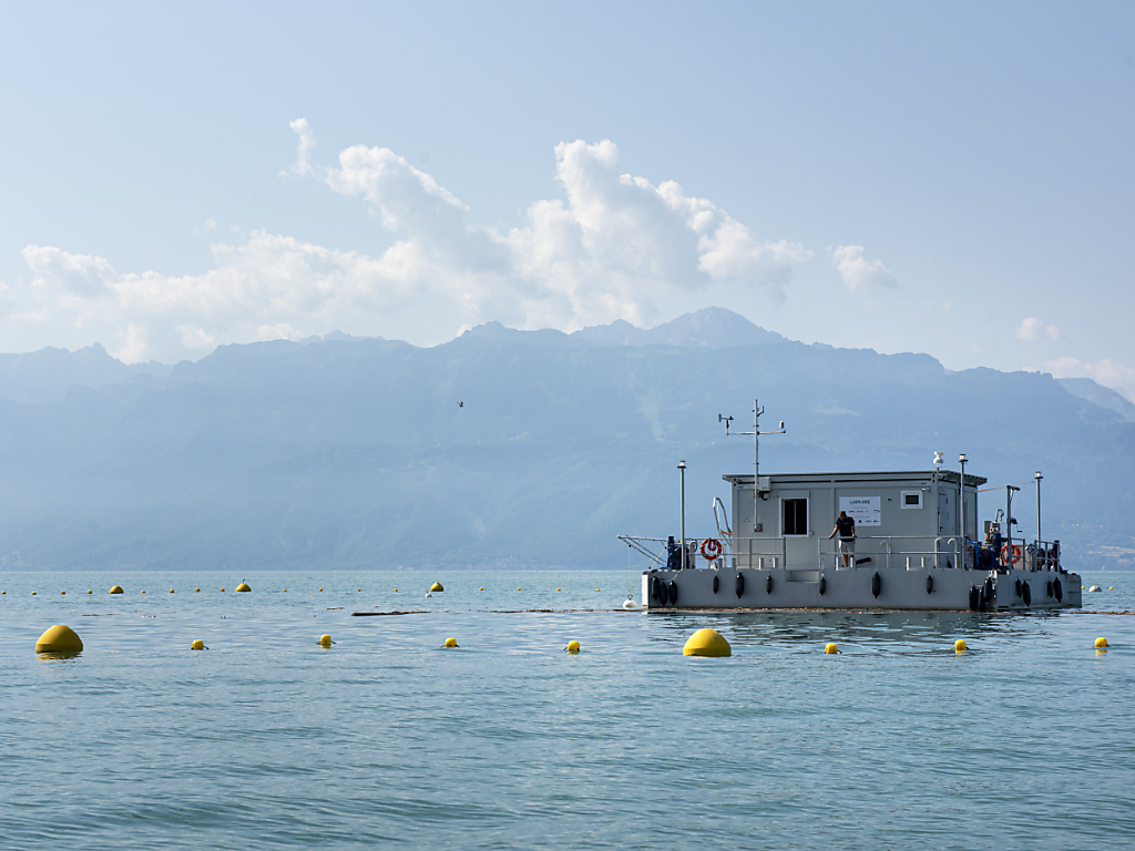 Les scientifiques lausannois ont utilisé pour leurs recherches la plateforme scientifique LéXPLORE posée sur le Léman au large de Pully/VD (archives). (© KEYSTONE/SANDRA HILDEBRANDT)