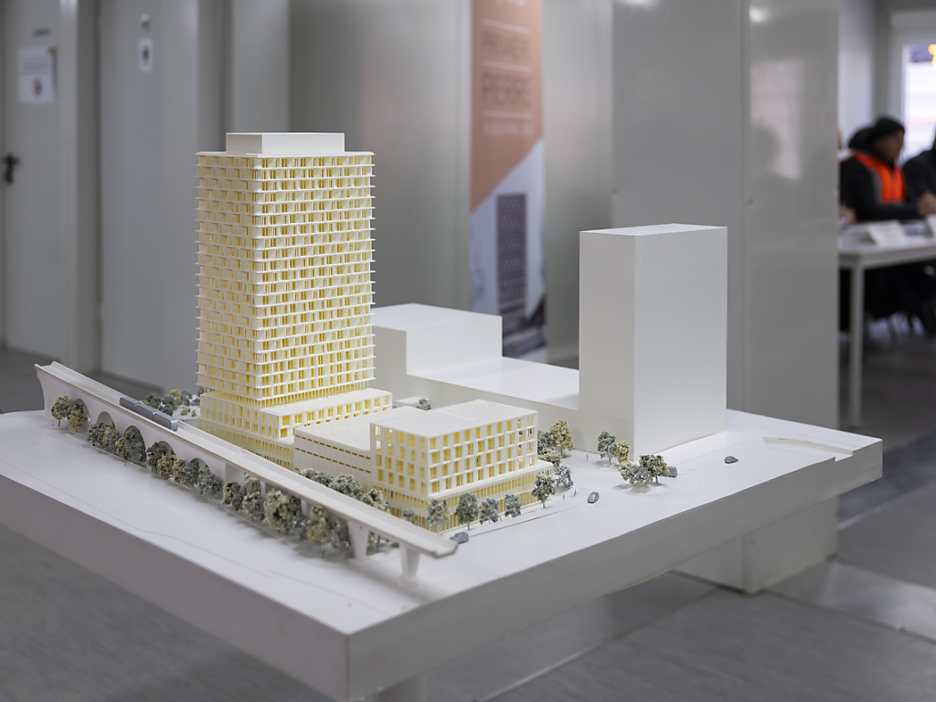La cérémonie officielle de la pose de la première pierre a eu lieu jeudi matin sur le site, proche de la Vaudoise aréna, en présence notamment de la présidente du gouvernement vaudois, Christelle Luisier, du syndic de Prilly, Alain Gilliéron, du maître d'ouvrage, la société Insula SA, et d'un représentant du bureau d'architectes danois 3XN.