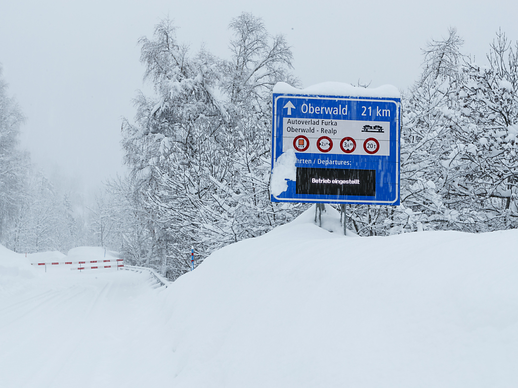 Un panneau indique la route pour le ferroutage à la Furka. (archives) (© KEYSTONE/ANDREA SOLTERMANN)