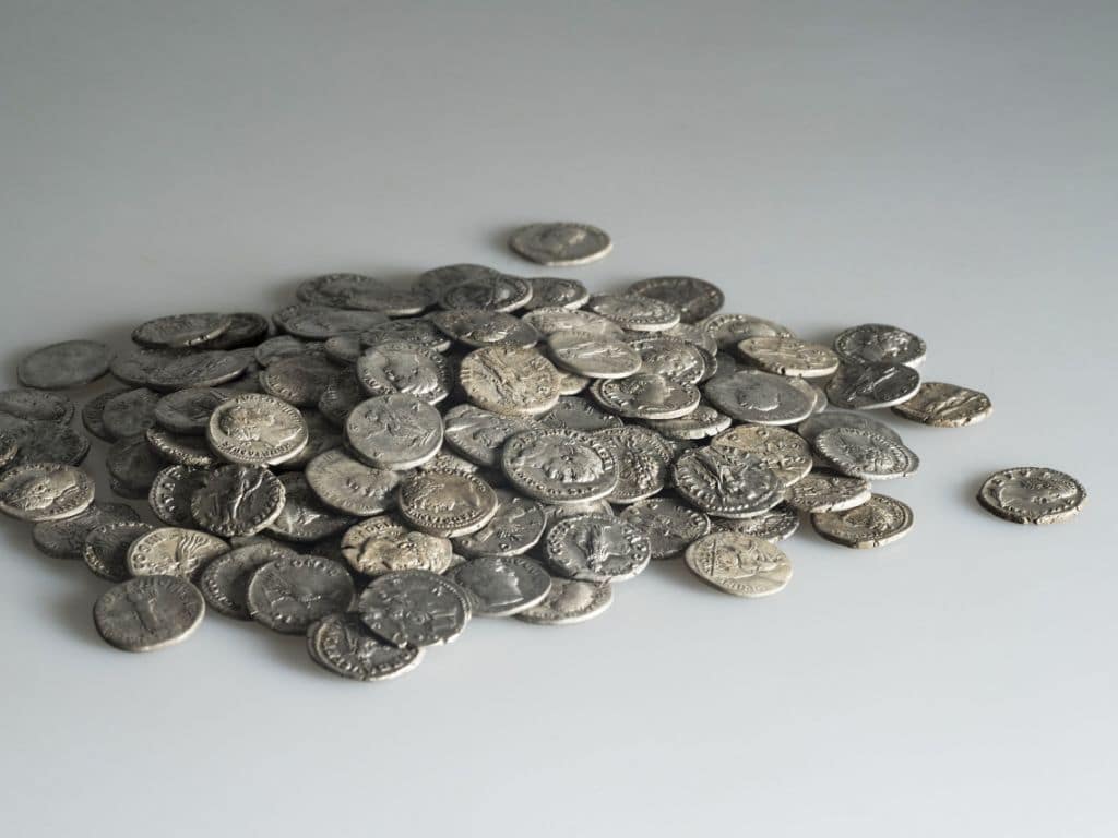 Un trésor romain comptant 293 pièces en argent a été découvert dans une forêt à Pratteln (BL). L'argent aurait été enterré par son propriétaire peu après l'an 180 après J.C., pour le mettre à l'abri des voleurs.