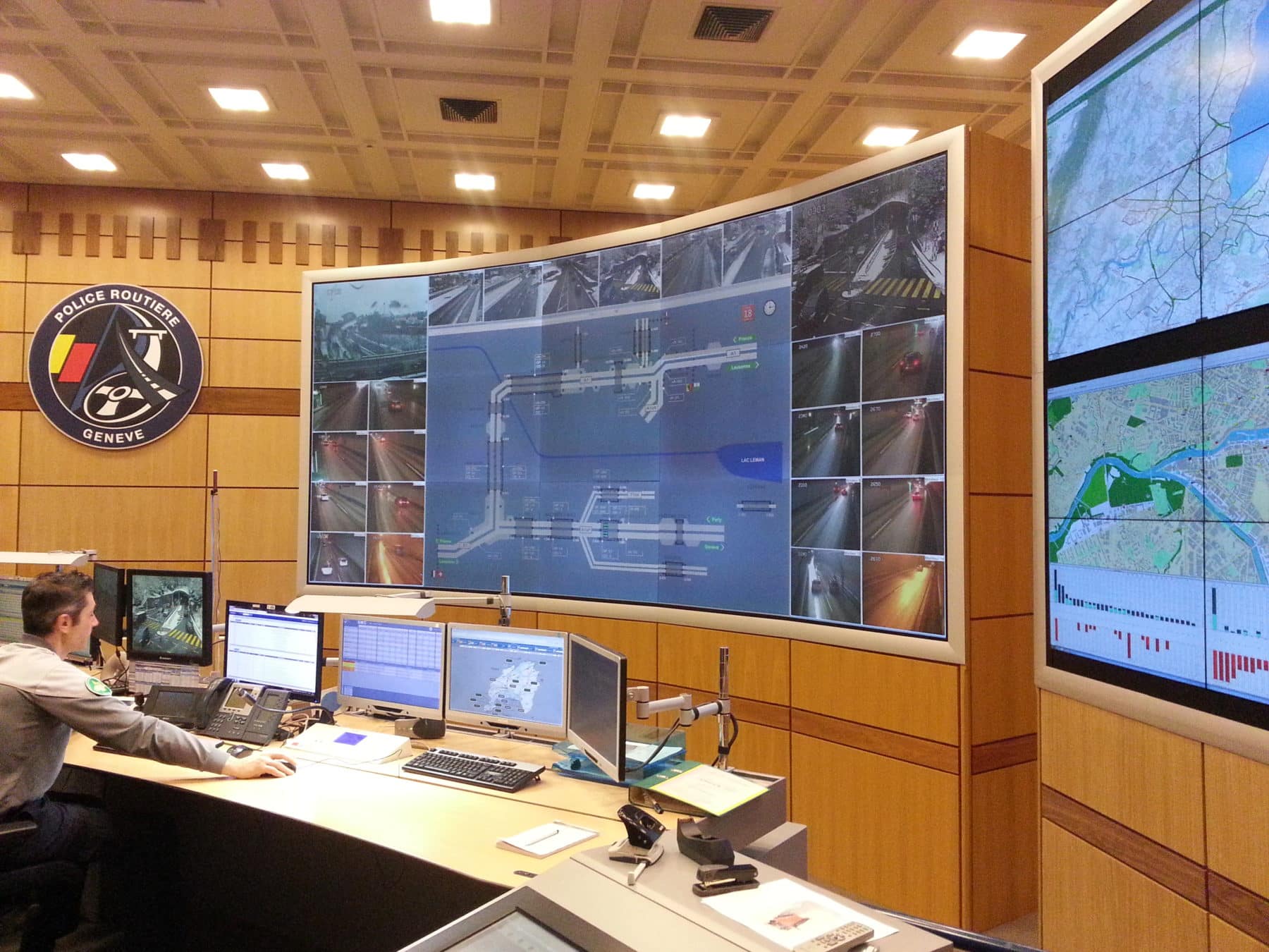 Lever de rideau pour la centrale de régulation du trafic à Genève. Désormais, la Police, les Transports Publics Genevois et la Direction des transports disposent de locaux communs à Lancy.  Ils pourront gérer les feux et les panneaux de circulation afin de fluidifier le réseau routier selon le trafic, et ce en temps réel.