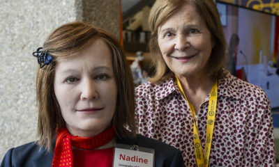 La scène est confondante tant il est parfois difficile à quelques mètres de distance d'identifier qui est le robot et qui est la professeure qui l'accompagne....