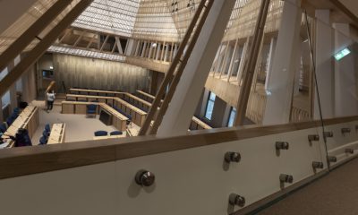 L'oeuvre à la forme ondulée telle un poisson, signature de l'architecte, est faite de roche calcaire, de verre et de courbes en titane qui reflètent la lumière et l'avant-gardisme de Gehry.