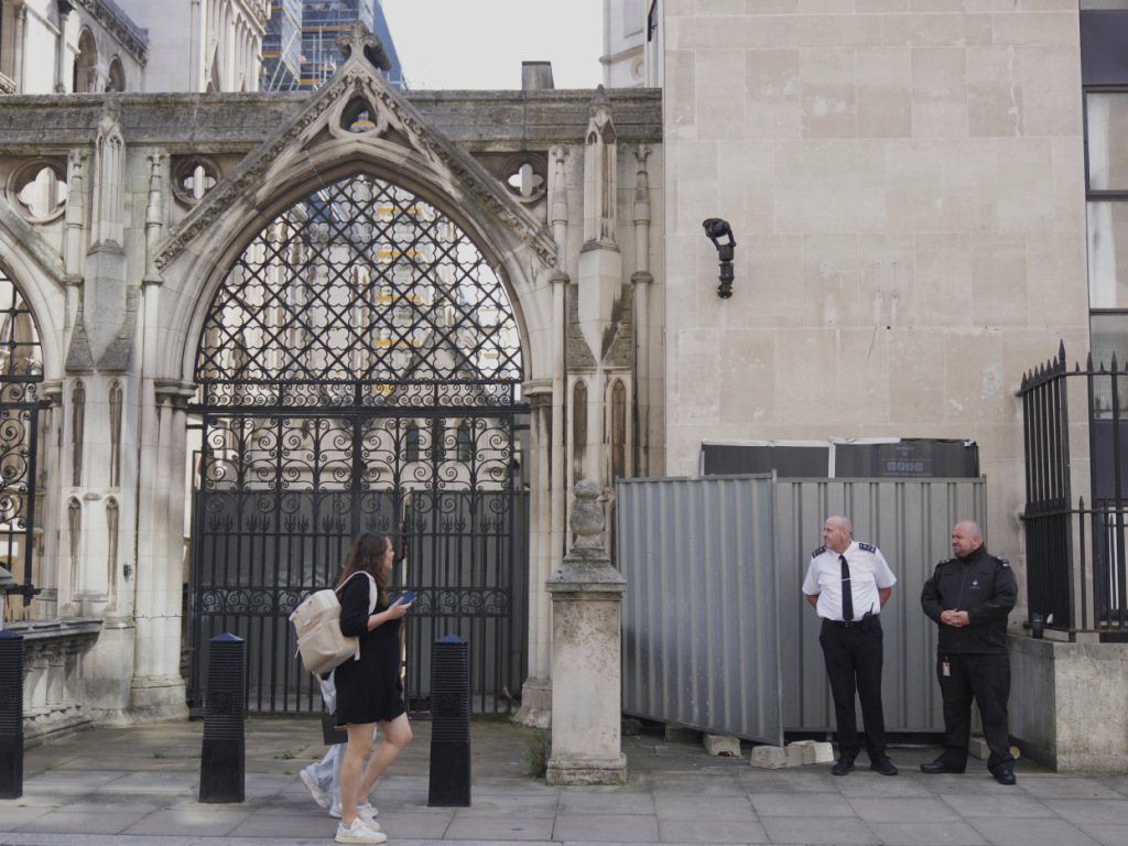 Le graffiti est apparu lundi matin sur l'une des façades extérieures de la Royal Courts of Justice, faisant aussi écho au débat sur la liberté d'expression au Royaume-Uni ravivé par la récente arrestation d'un créateur de séries.