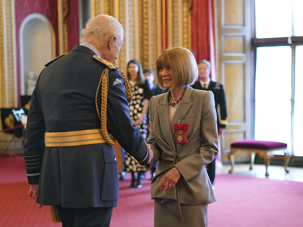Anna Wintour, Editor in Chief of Vogue is made a Companion of Honour by King Charles III at Buckingham Palace, in honour of her services to fashion, in London, Tuesday, Feb. 4, 2025. (Jordan Pettitt/PA via AP) Geo-Information: GBR Quelle: AP Fotograf: Jordan Pettitt Restriktionen: PA (© KEYSTONE/AP/Jordan Pettitt)